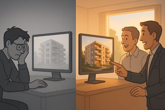 Et godt visualiseringsbyrå skal gjøre mer enn å levere en pent renderet fasade eller et møblert rom. Det handler om på måte – av prosjekter, mål som skal og hvordan bildene skal utføres i praksis. Når et visualiseringsbyrå kulkans, blir illustrasjoner og forlengelse av selve konseptet - ikke bare en pynt.