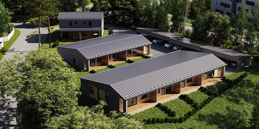 En 3D-exteriör är en datorgenererad, tredimensionell bildrepresentation av byggnadens fasad och omgivningar. Det ger en fotorealistisk vy och låter dig se byggnaden från olika vinklar och under olika ljusförhållanden, till skillnad från vanliga fotografier, som bara är inspelningar av ett enda ögonblick. På Visu24 producerar vi exteriörbilder i 3D av högsta kvalitet som framhäver den nya fastighetens utseende och hjälper till att visualisera dess placering i miljön.
