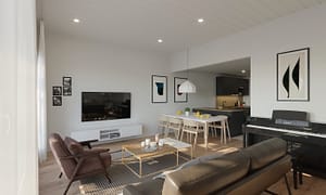 Erfarenhet och fotorealism: Med en virtuell rundtur får potentiella köpare se lägenheten eller fastigheten från sitt eget vardagsrum. Fotorealistisk 3D-rendering skapar en autentisk känsla av utrymmet och gör att objektet kan utforskas från olika sidor, vilket ger köpare en upplevelse som liknar en riktig lägenhetsvisning.