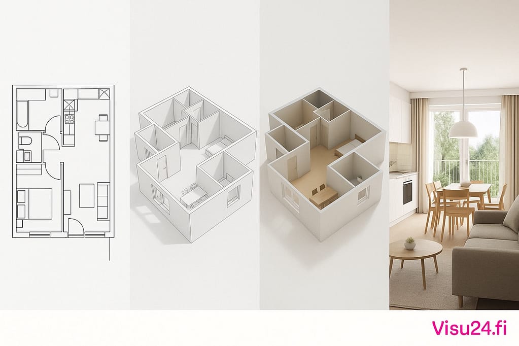 Olen nähnyt monia kertoja, kuinka potentiaalinen ostaja hylkää kohteen, jonka visualisointi on heikko tai puuttuu kokonaan – ei siksi, ettei kohde olisi hyvä, vaan koska he eivät pysty ymmärtämään sen potentiaalia pelkkien teknisten piirrosten perusteella.